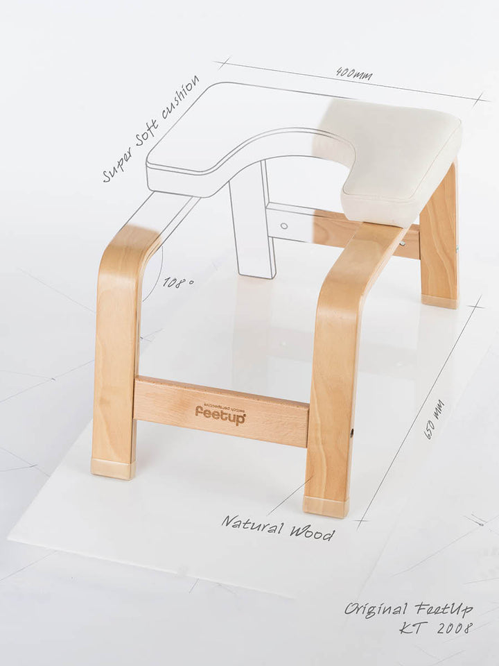 So Kilian looked for ways to make headstands more safe and easy. After many nights in the old family workshop, the first FeetUp Trainer was born!